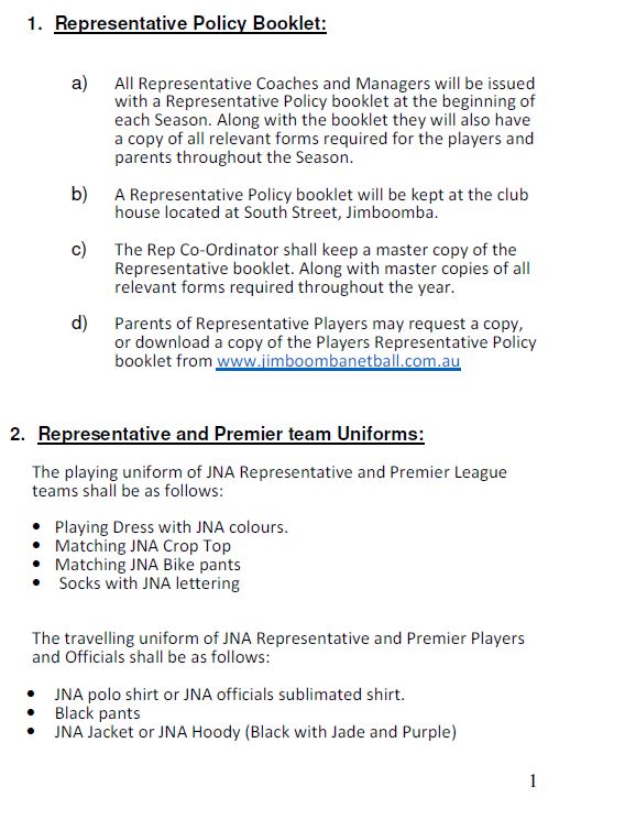 Click the below for the PRINTABLE Representative Policy Booklet –(booklet format)